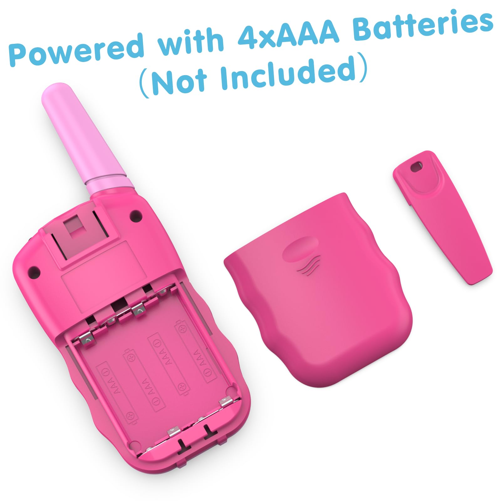- [Ergonomic Design]: Small and light body allow kids easy to use and just 90g per walkie talkie is easy to carry, these will fit comfortably in children's hands with ergonomic design. An uncomplicated push-to-talk button makes this toy easy to use for 3-13 years old girls.