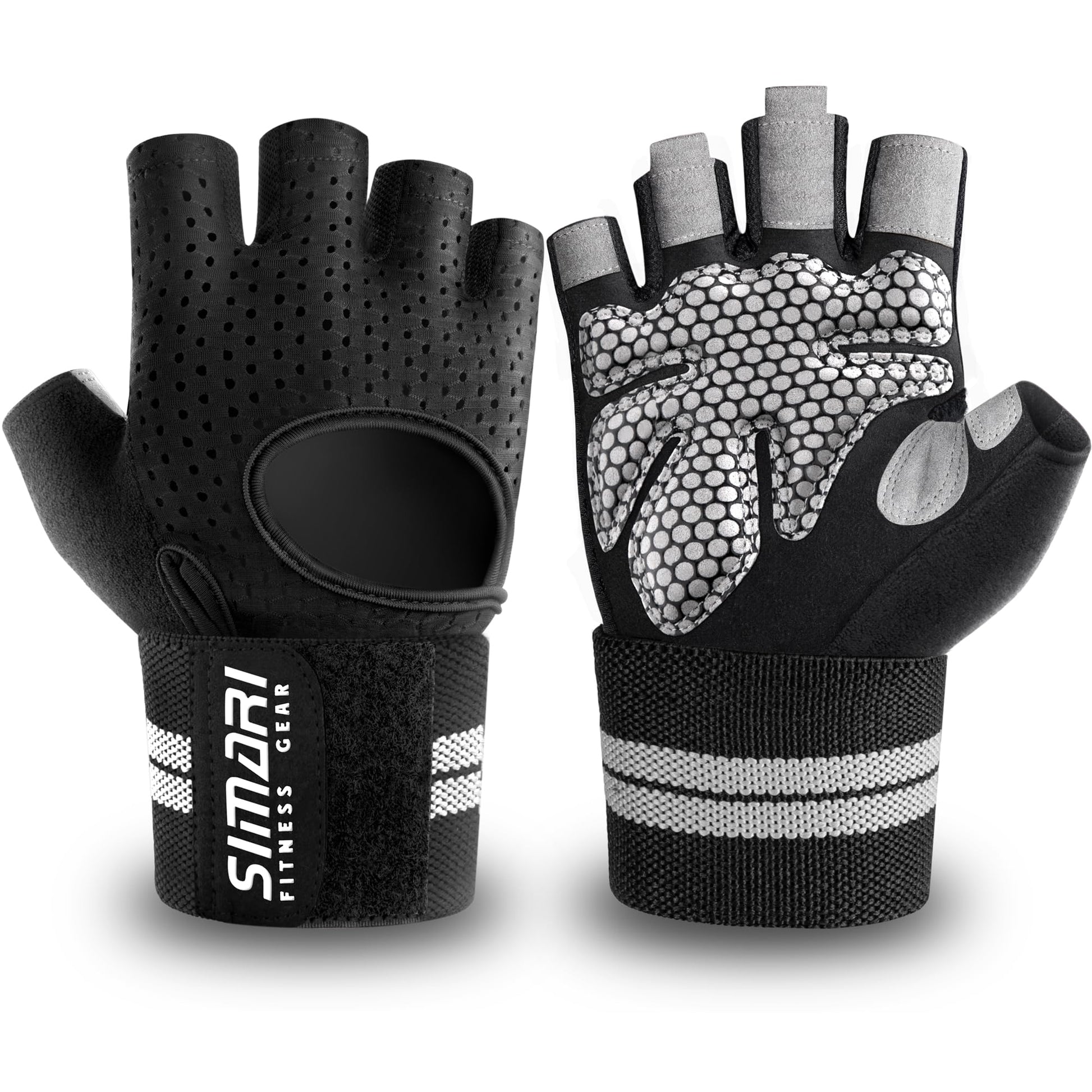 SIMARI Breathable Workout Gloves for Men Women, Padded Weight Lifting Gloves with Wrist Wraps Support, Full Palm Protection, Grip for Gym Training, Fitness, Weightlifting, Exercise Fingerless Black