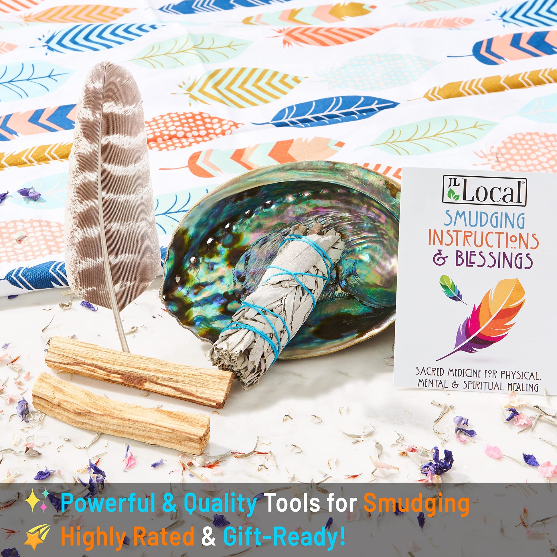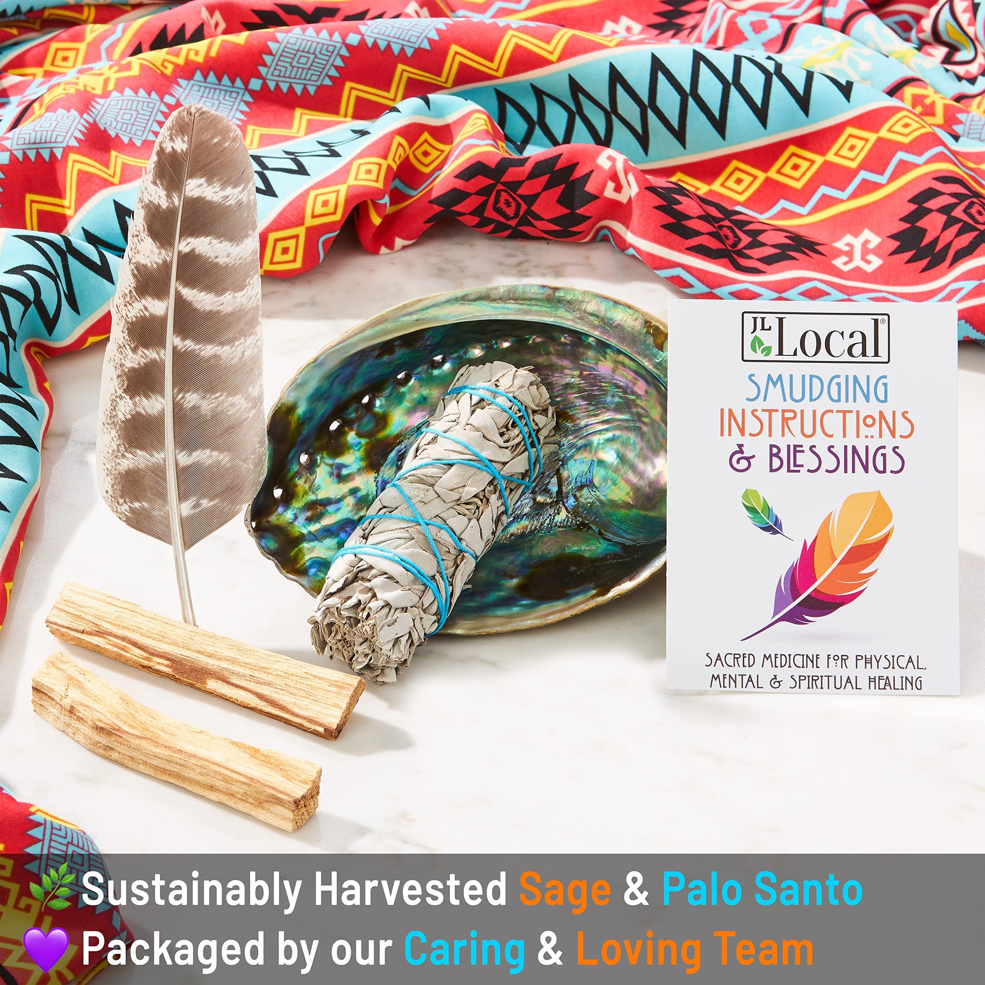 Smudge Kit - White Sage, Palo Santo, Abalone Shell, Smudging Feather, for Healing, Purifying, Meditating & Incense (Essentials)