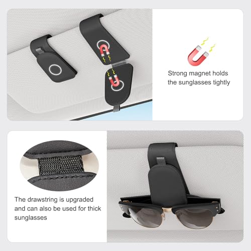 Sotfamily Sunglass Holder for Car Visor, Suede Cloth Magnetic Sunglass Organizer for Car Accessories, 2 Packs, Black