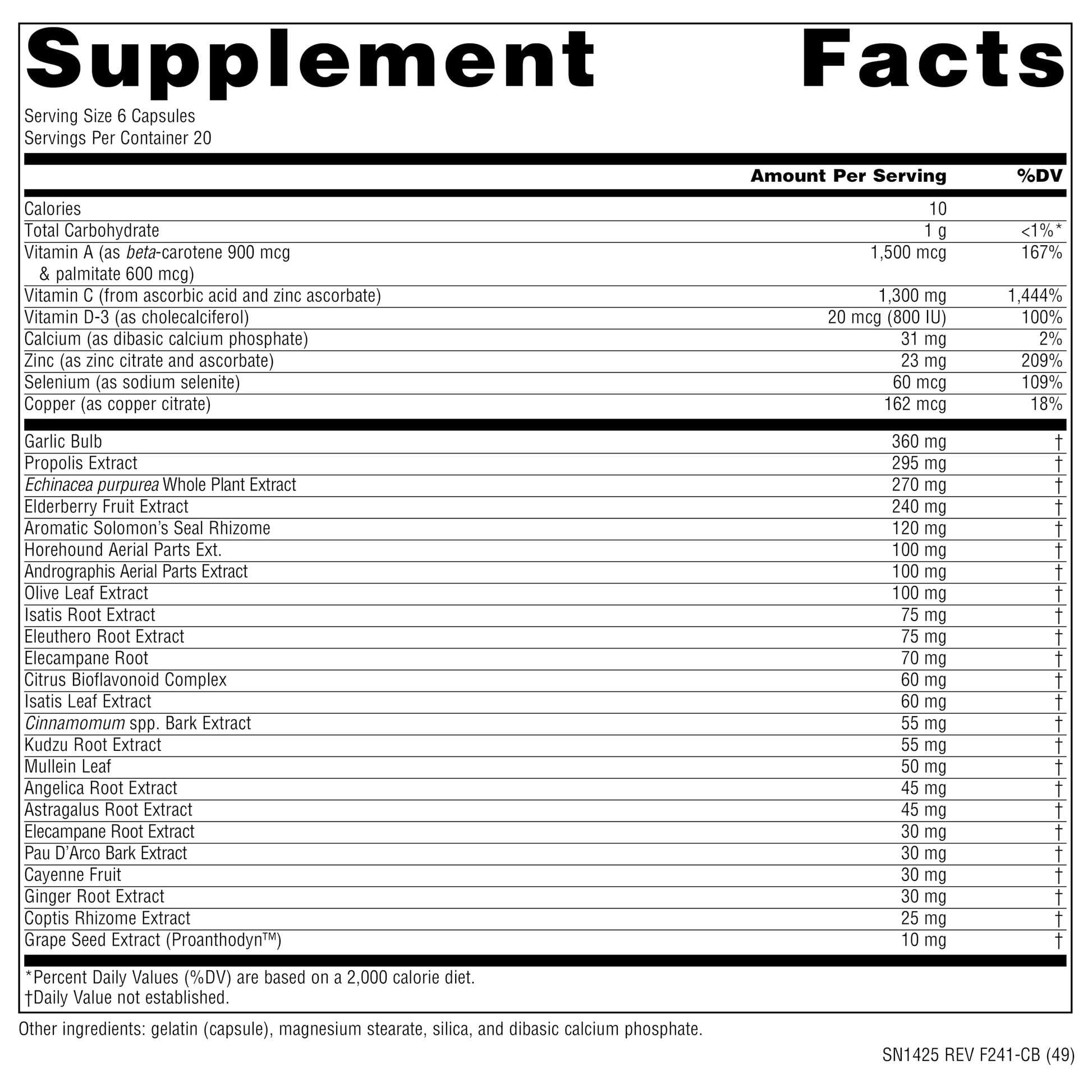 - COMPLEX IMMUNE DEFENSE - Wellness Formula provides clinical doses of key nutrients vitamin A, beta-carotene, vitamin D, and zinc to support a healthy immune system. This formula includes garlic bulb and propolis, which have a long history of traditional use as immune system boosters. It also contains several immune support ingredients rooted in traditional medicine: Echinacea, elderberry, and horehound are included to enhance immune function, and astragalus and isatis leaf and root provide immune defense.