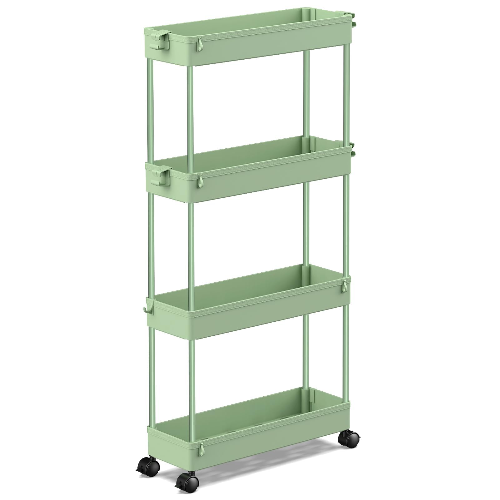 SPACEKEEPER Slim Rolling Storage Cart 4 Tier Bathroom Organizer Utility Cart Mobile Shelving Unit Tower Rack for Kitchen, Laundry Room, Bathroom, Narrow Places, Green