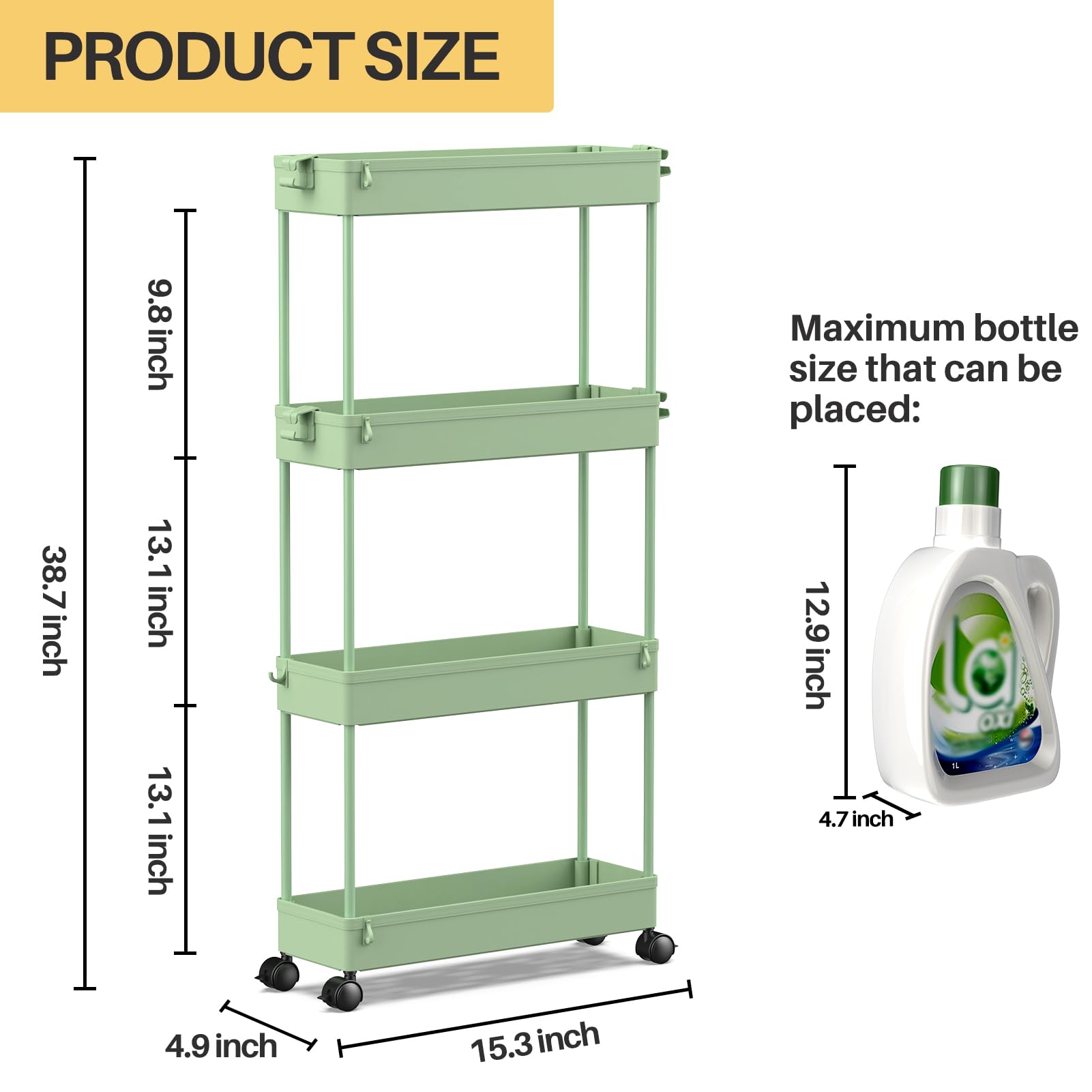 - 【Flexible 4 Tier Storage Cart】- The 4-tier slim storage cart is 4.75 in design which can be used in tight spaces in your home for storage. Suitable for closets, kitchens, bathrooms, garages, laundry rooms, offices or in-between your washer and dryer.