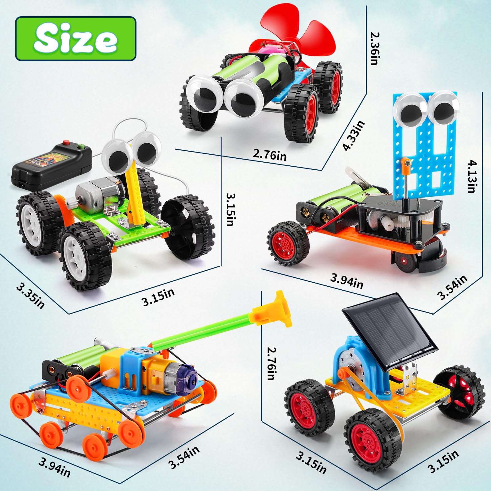 - 5 SET STEM KITS FOR KIDS: These stem science kits for kids ages 8-12 contain 5 separate robot car: a solar powered cars, a wind powered car, an obstacle avoidance robot, a tank and a wire-controlled car. These stem toys are perfect for boys and girls age 6-8 8-12, they will love building and playing with their own robot car kit