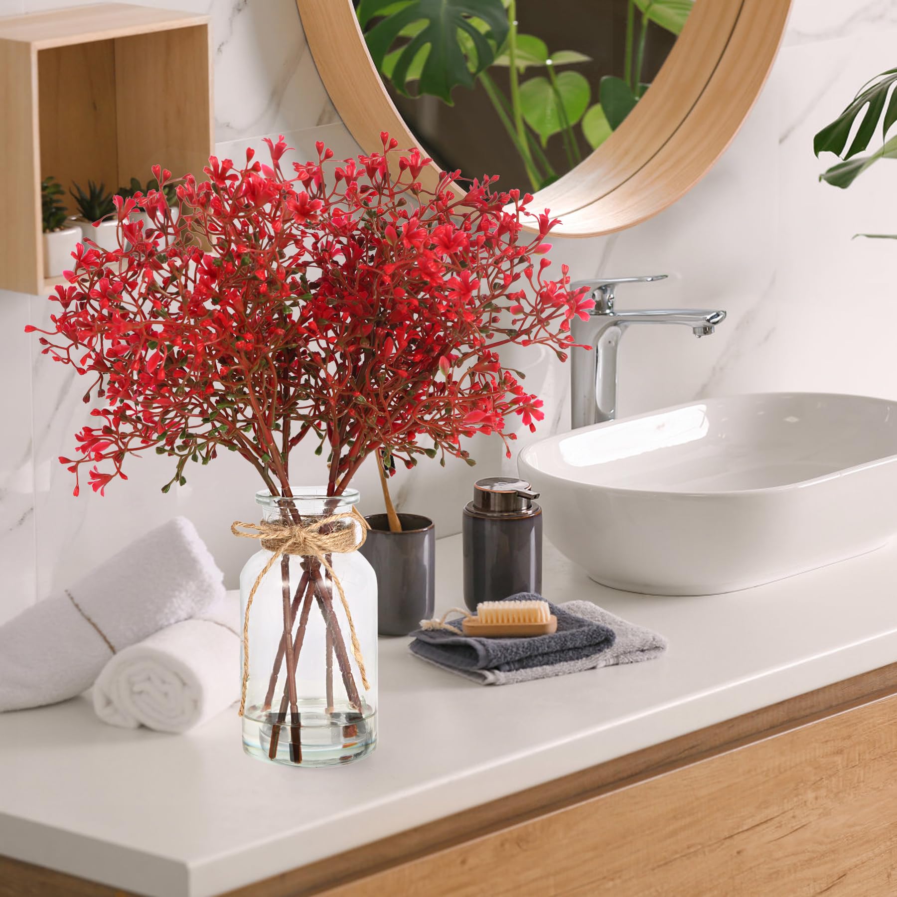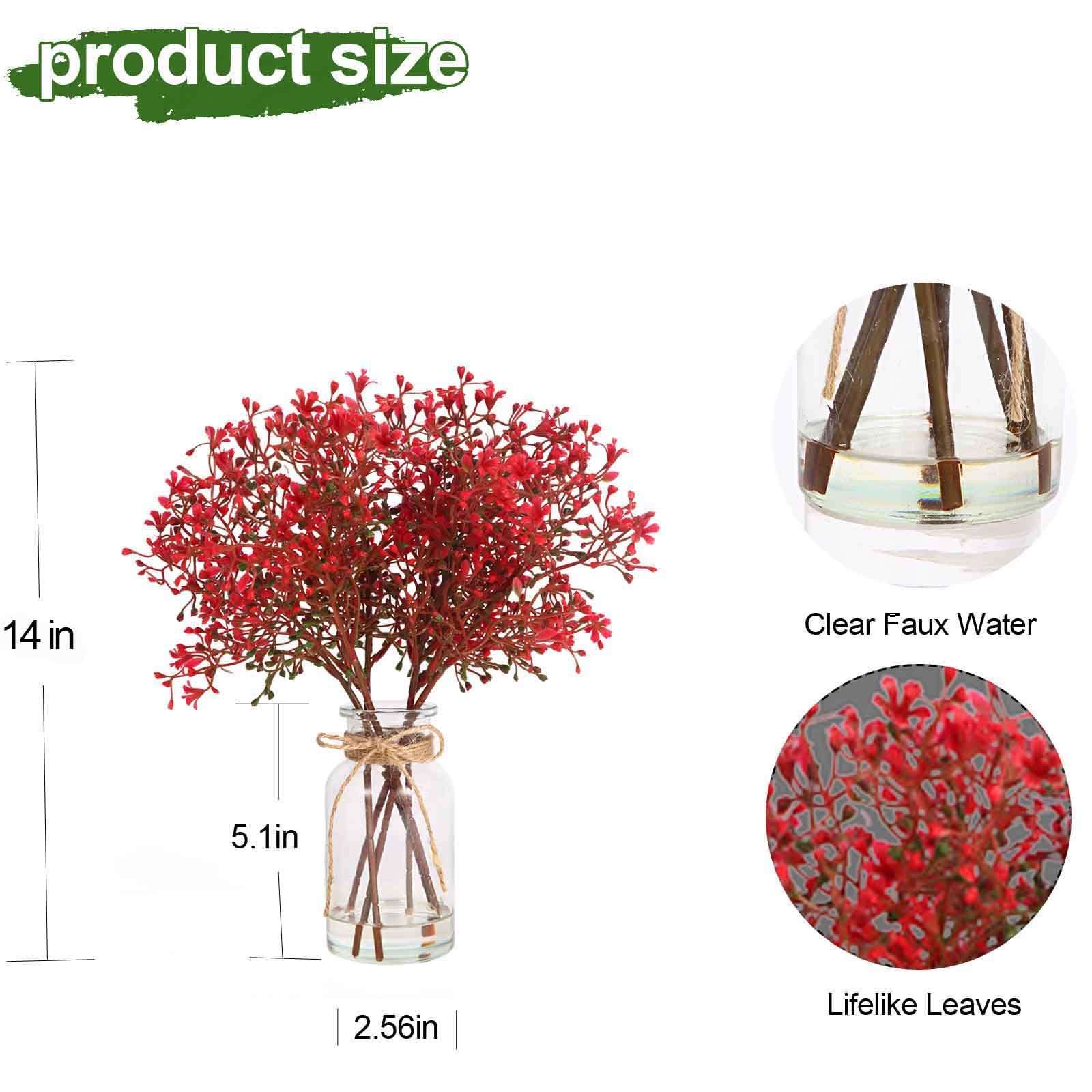 TSIPEKLO Babys Breath Artificial Flowers in Glass Vase with Faux Water, 14" Faux Baby Breath Plastic Red Flowers Fake Gypsophila Flower for Home Office Farmhouse Wedding Centerpiece Décor