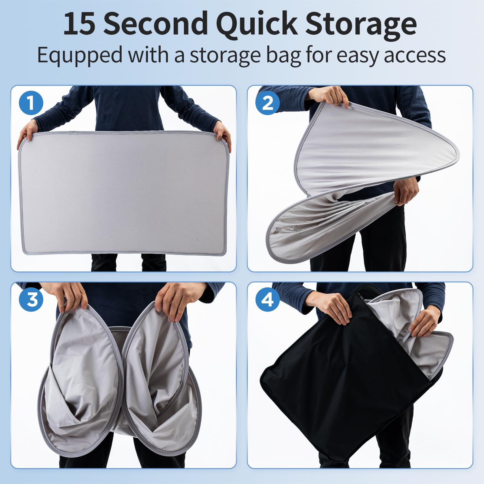 - Easy Installation & Storage: Zero worry about hard to install the sunshade model 3.Following the manual or the video on our product page.Both sides of the product are labeled, please distinguish between the front and back before installation.You could easily install it within 1 minutes.The sunshade came in well packaged storage bag for easy access in front or rear trunk.