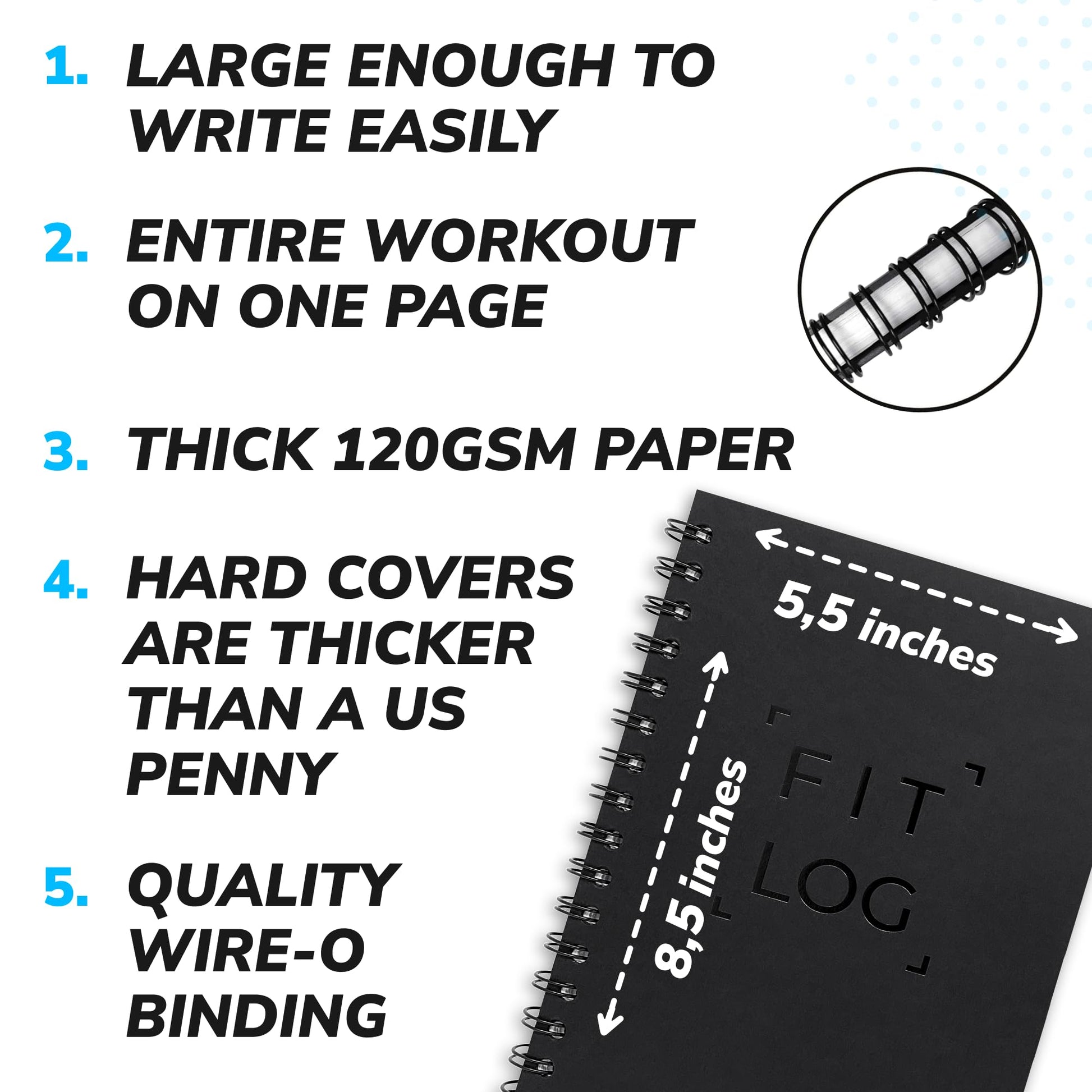 - π Stylish. The 150-page exercise log is not flimsy. Its cover has a protective layer, and the notebook is made from high-quality paper. The pages are joined with sturdy wire so it wonβt get shabby and fall to pieces.