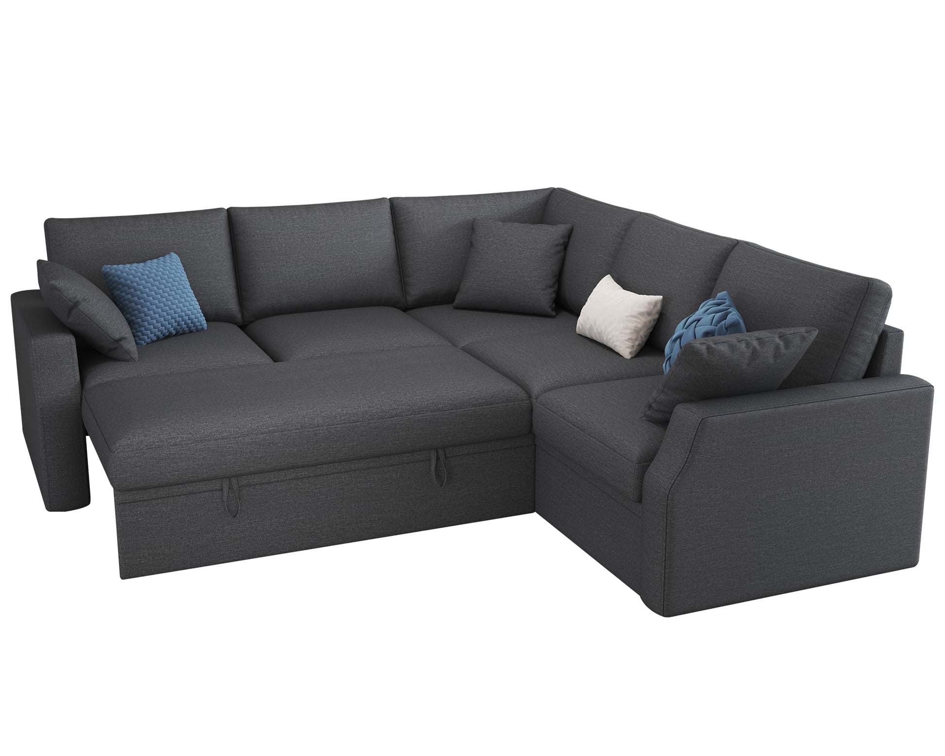 VanAcc Sofa Bed, 85 Inch Sleeper Couch with Storage Seat, L Shaped Sofa with Pull Out Sofa Bed, Sectional Couches for Living Room Apartment, Grey Linen Couch Sofa