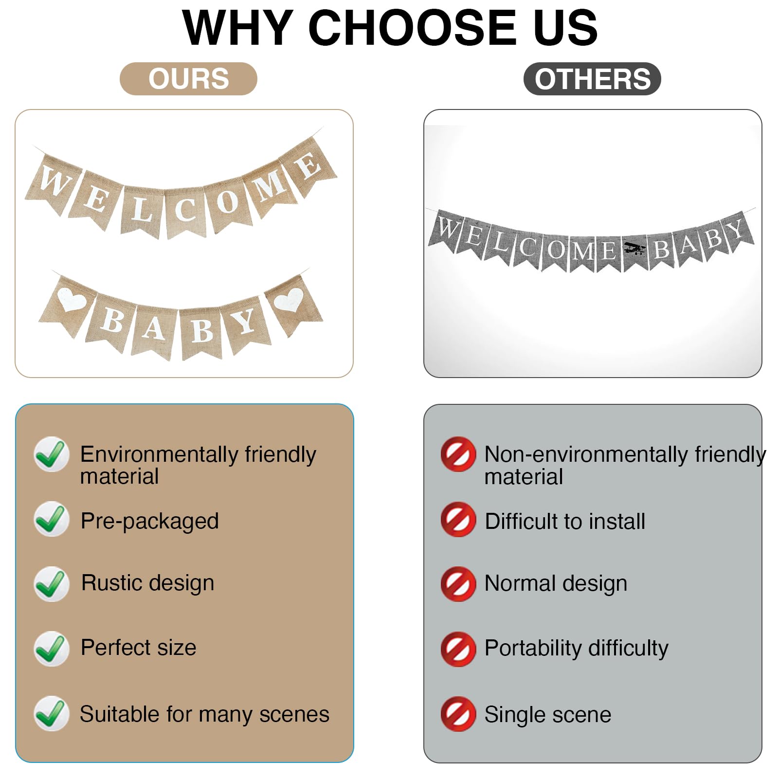✅ Natural Burlap Banner: if you're tired of all those boring baby shower signs, then the natural, unrefined texture of our burlap welcome sign is exactly what you need to upgrade your baby party decor.
