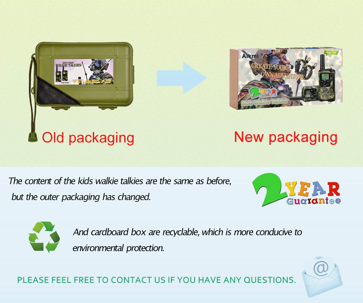 - ENHANCE FAMILY AFFECTION Aikmi walkie talkies for kids can help parents to find an interesting and inspiring way to accompany kids and listen to the inner voices of their kids, bringing the family closer. Let go of technology and be close to nature. Popular boys toys ages 4-12, especially suitable for 5, 6, 7, 8-year-old boys