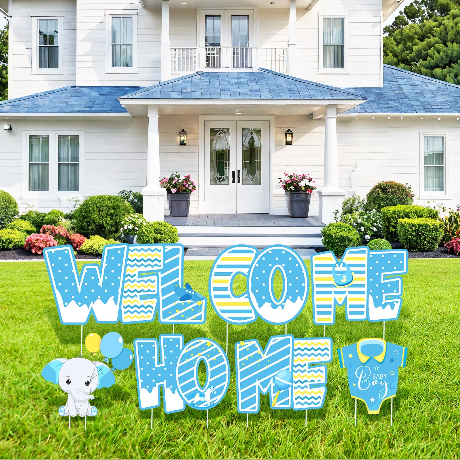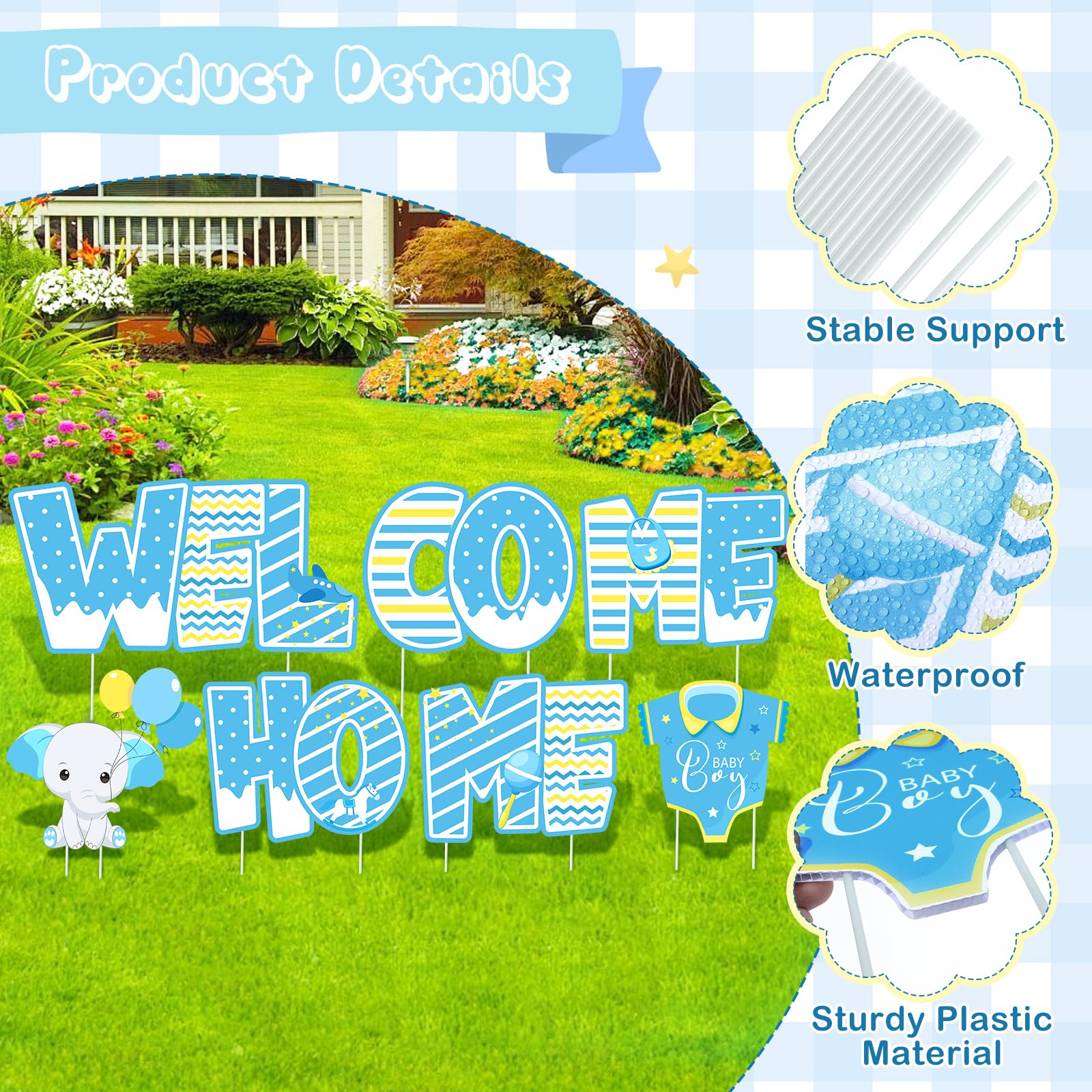 - Package Includes: You will get 7 pieces of welcome home baby boy yard signs, and 14pcs stakes for installation; These adorable baby shower yard signs are eye-catching and visually appealing, setting the stage for an unforgettable celebration