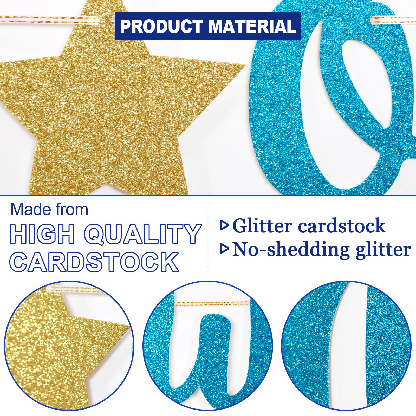Welcome Little One Glitter Banner, Pre-strung Baby Shower Banner, Gender Reveal Party Decor (Blue)