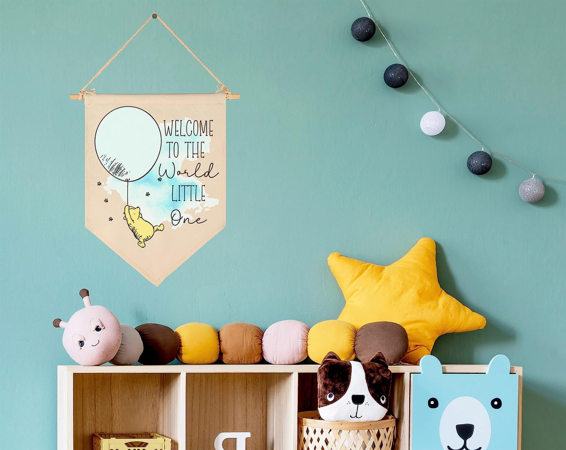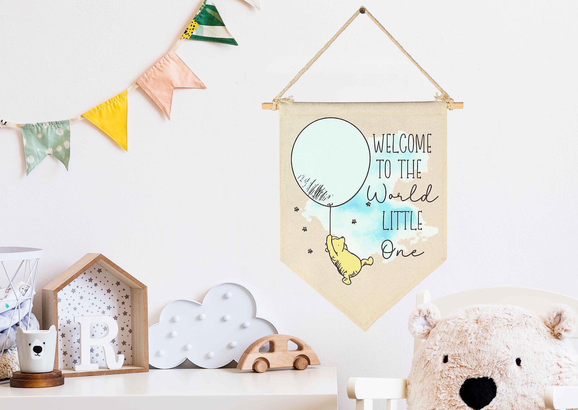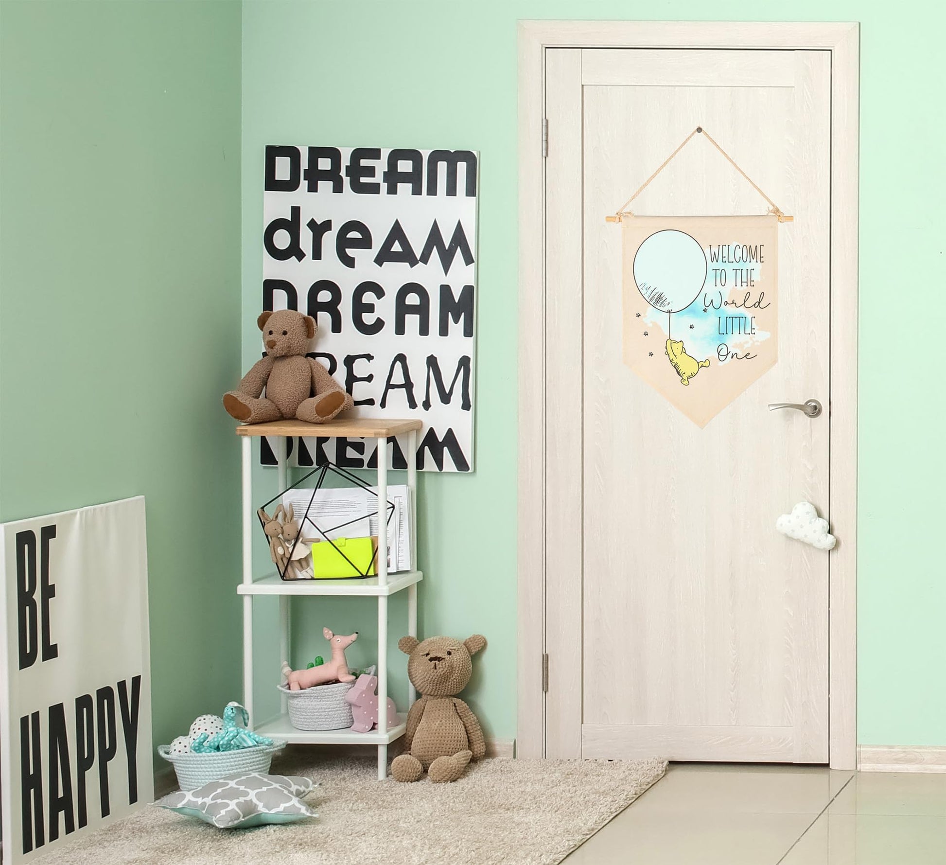 Details: Our natural beige banners are made of high quality cotton canvas , strong and lightweight,blends well on any wall color.They are the perfect wall decor gift for embellishing nursery bedroom playroom reading corner door,front porch, living room,office,bedroom,hanged onto anywhere in your home, and great gifts for baby newborn kids girl boy teen,baby showers, birthday,christmas,new year.