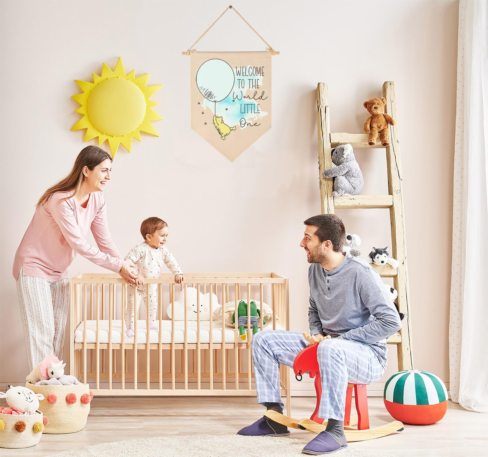 Welcome To The World Little One-Baby Announcement Decor-Congratulations New Baby Gift-Baby Gift Shower-Flag Decor Gift For Baby Boys Girls Newborn-Banner Wall Sign Gifts For Nursery Baby Room