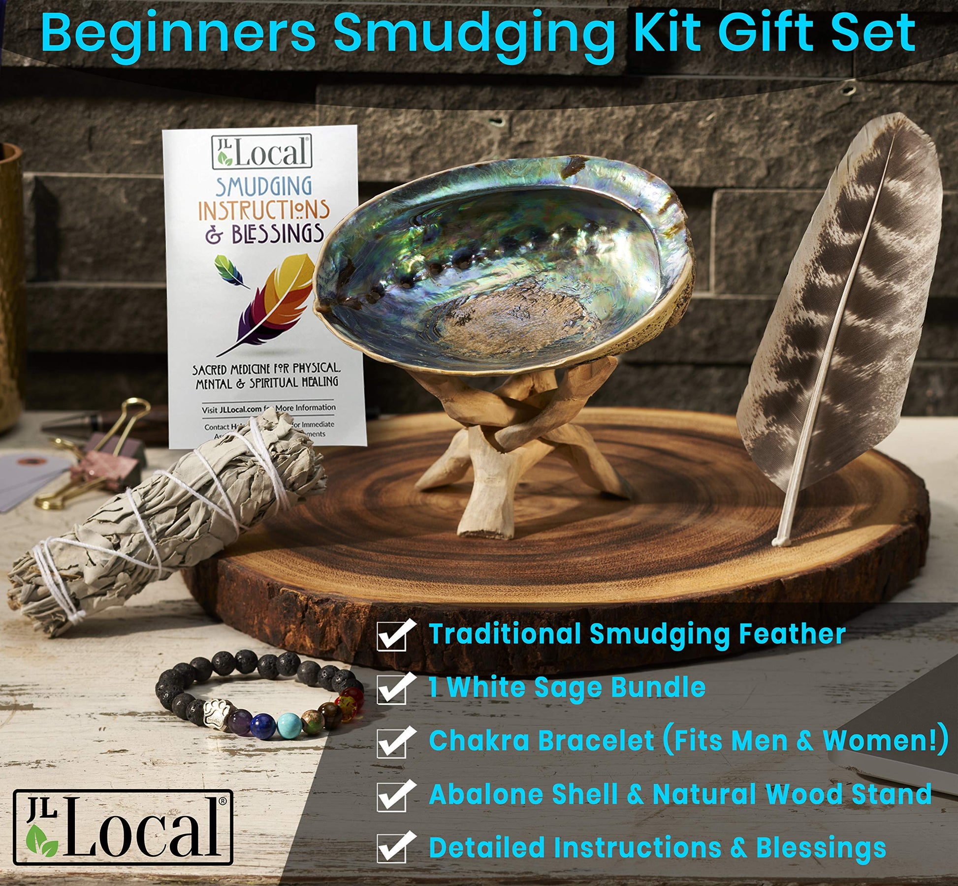 White Sage Smudging Kit Smudge Stick Gift Kit + Instructions & Blessings (Beginner's Kit)