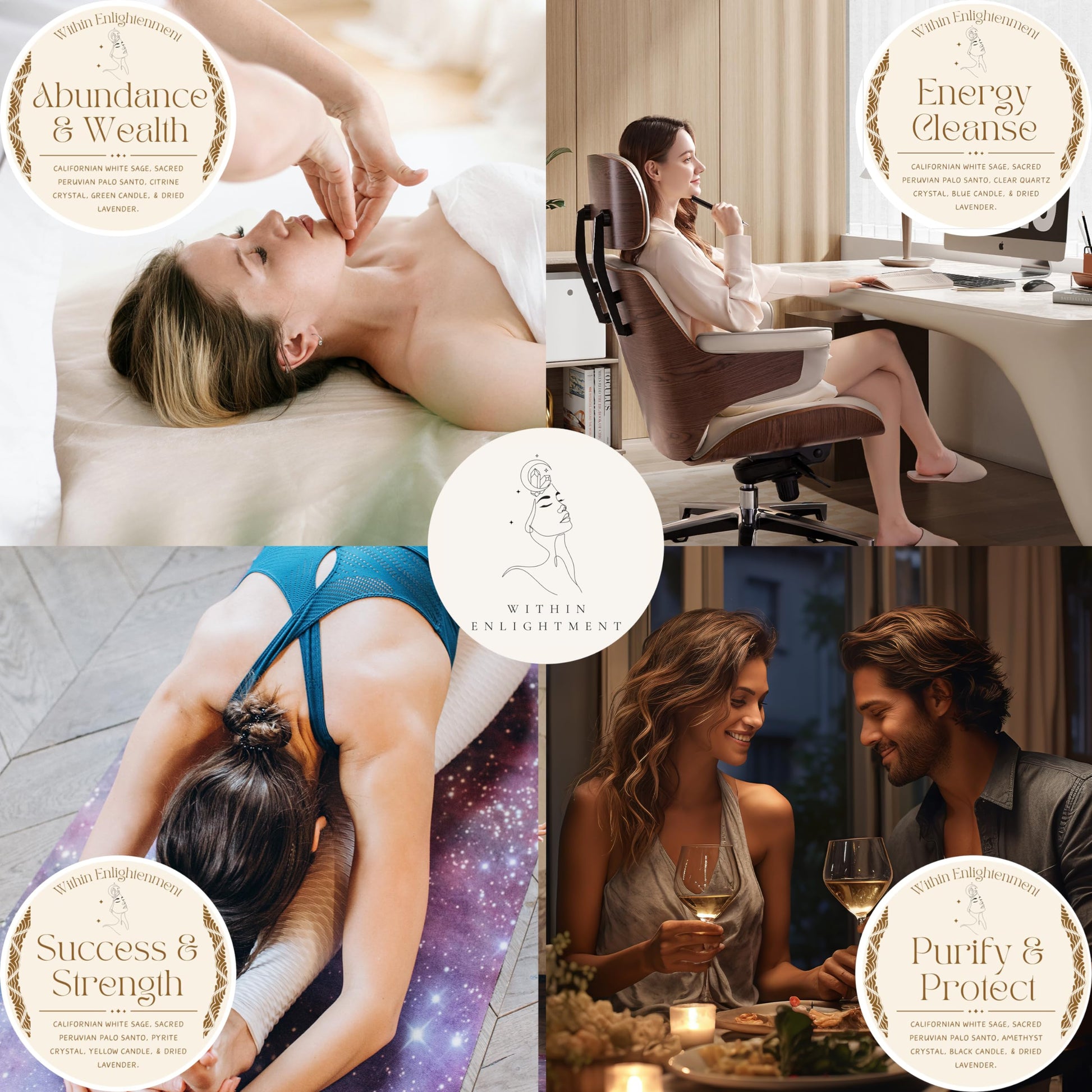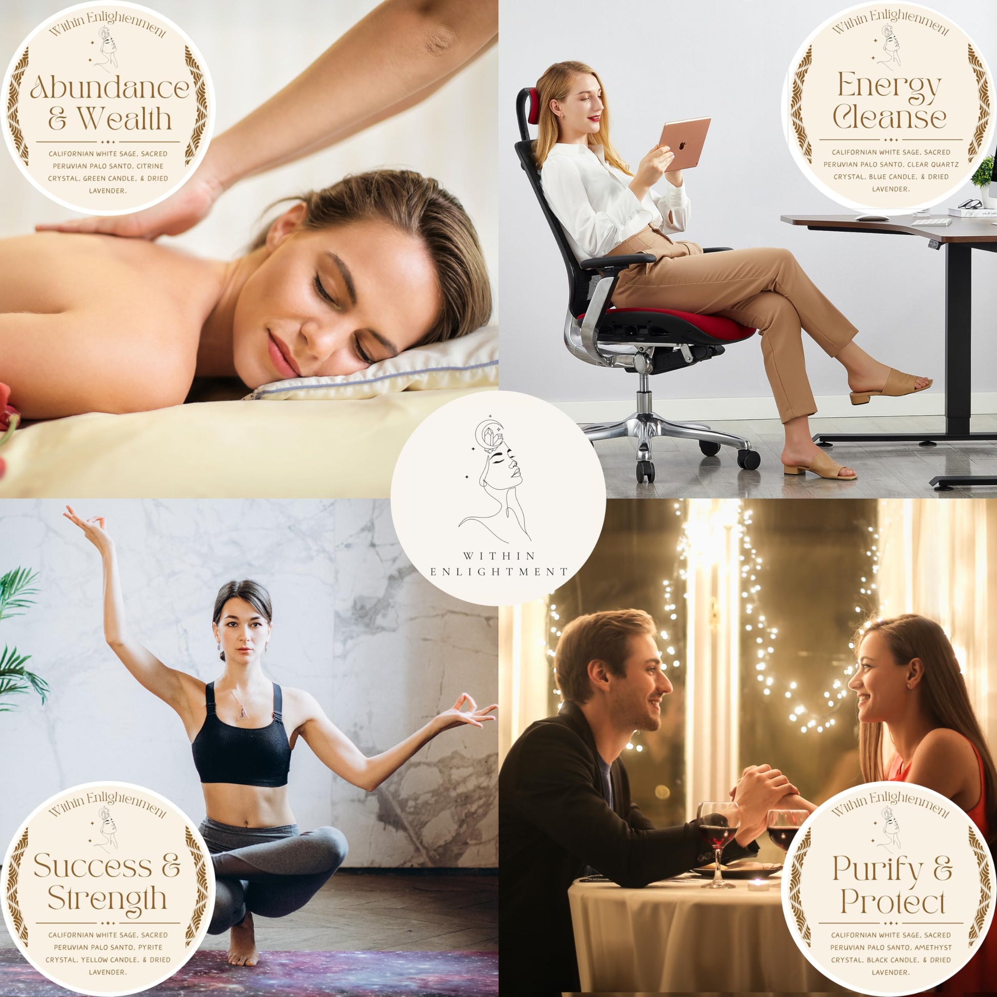 Within Enlightenment Sage Smudge Bundle - White Sage Smudge Kit - Palo Santo & Sage Sticks Kit - White Sage Bundle - Meditation Accessories & Spiritual Gifts (Success & Strength)