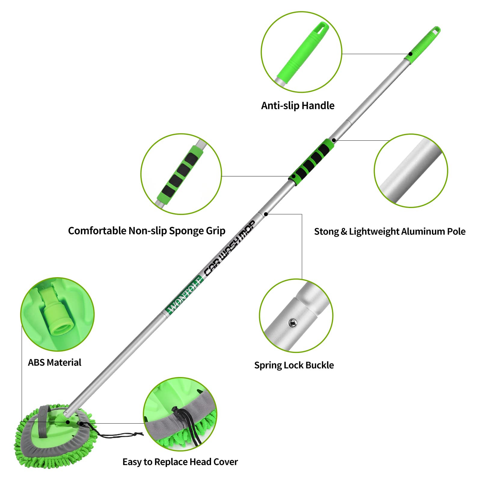 - 【Extra-Long & Scratch Free Lint Free】- Microfiber Chenille Mitt is machine washable and superb absorbent. Spring button design acting as a role to get car washing brush assembled and disassembled freely. Details Cleaning could be done with a wash brush mop head mitt after disassembly, and when combined together, it will turns into a long handle car wash brush, lightweight to be held for a funny and quick car washing.