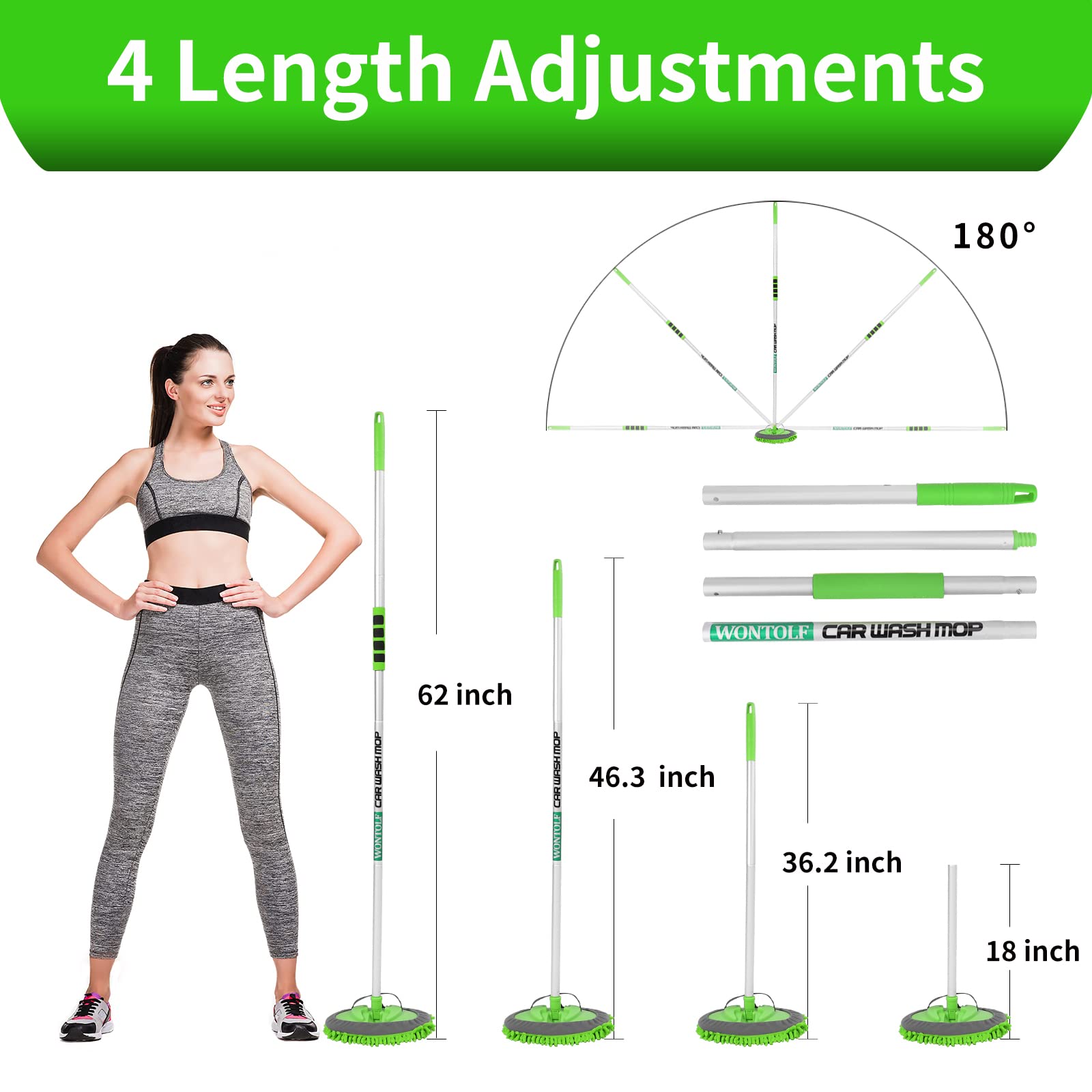 Wontolf 62'' Car Wash Brush with Long Handle Chenille Microfiber Car Wash Mop Mitt Car Cleaning Kit Windshield Window Squeegee Car Duster Microfiber Towels Wheel Tire Brush for Cars RV Truck Boat