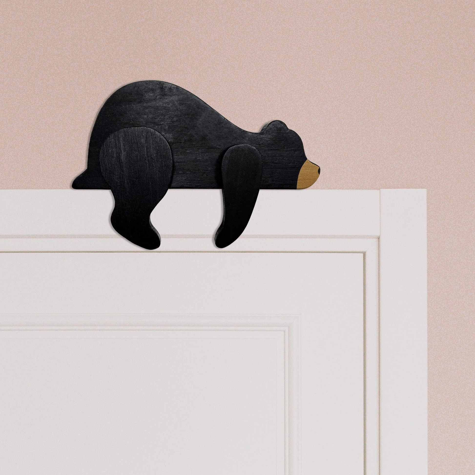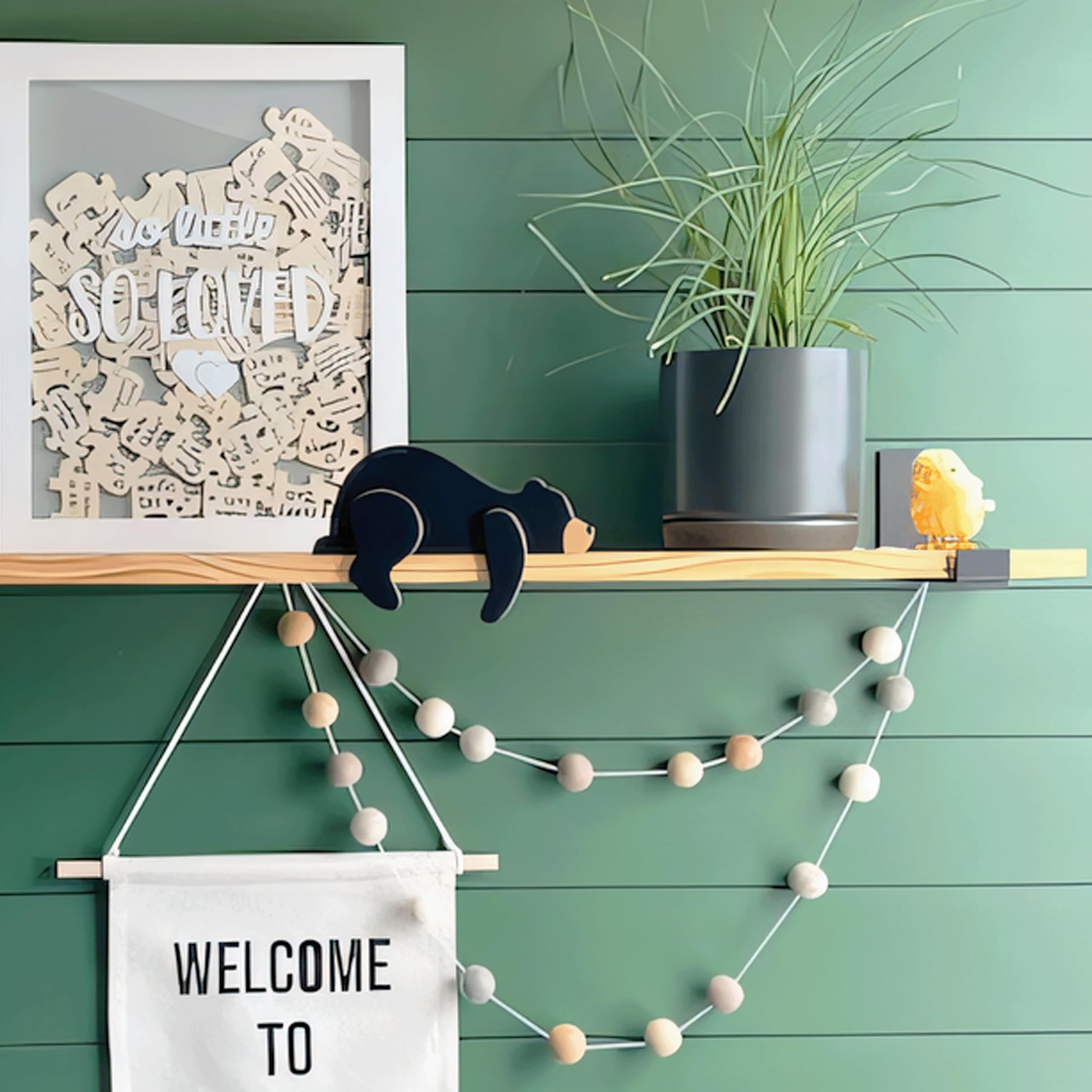 Woodland Nursery Decor For Baby, Black Bear Decoration, Wooden Wilderness Sleeping Bear, Safari Forest Decor For Classroom Bedroom Nursery Room Shelf (Black)