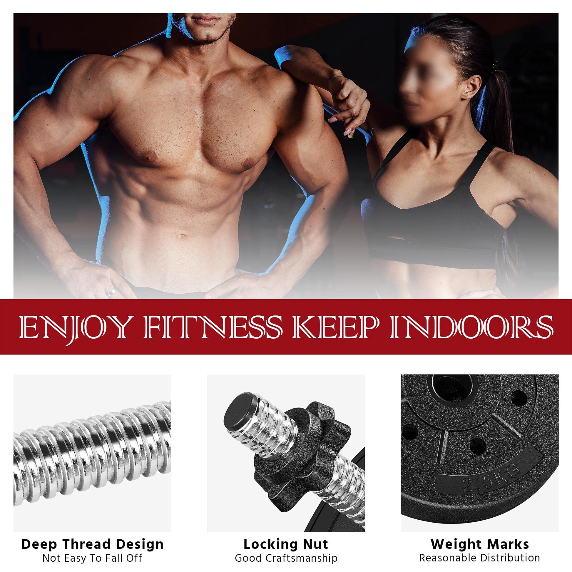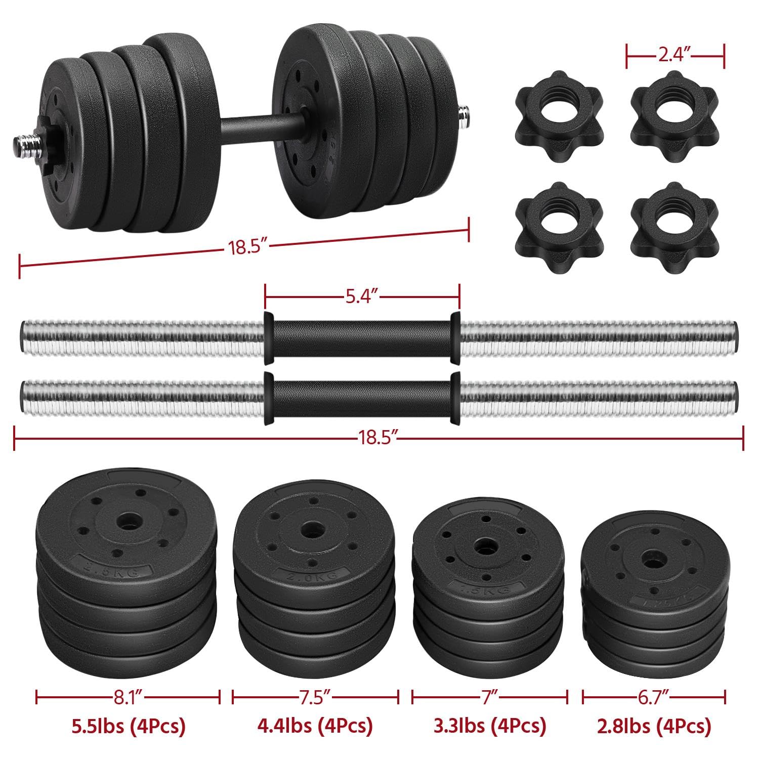 - Durable Material: This 66lbs dumbbell set is constructed of cement weight plates covered with hard plastic and electroplated iron dumbbell bars. Oxidation-proof and water-resistant materials provide you with long service life