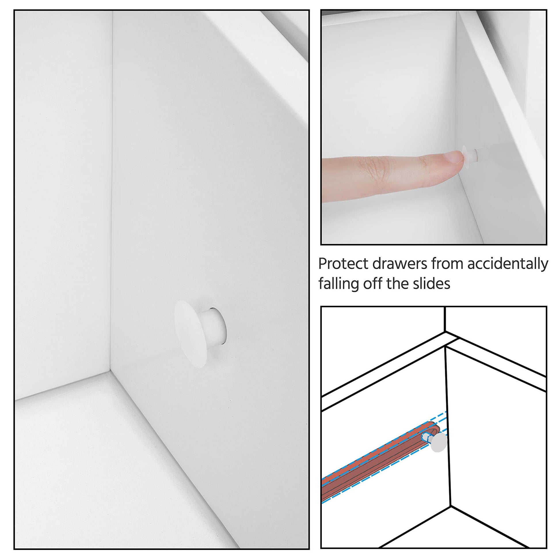 - Ideal space saver: Four drawers with cutout handles and one cupboard with a customizable shelf for you to organize different items like cosmetics, toiletries, towels, toilet paper, etc. A great option for tucking away bathroom clutter