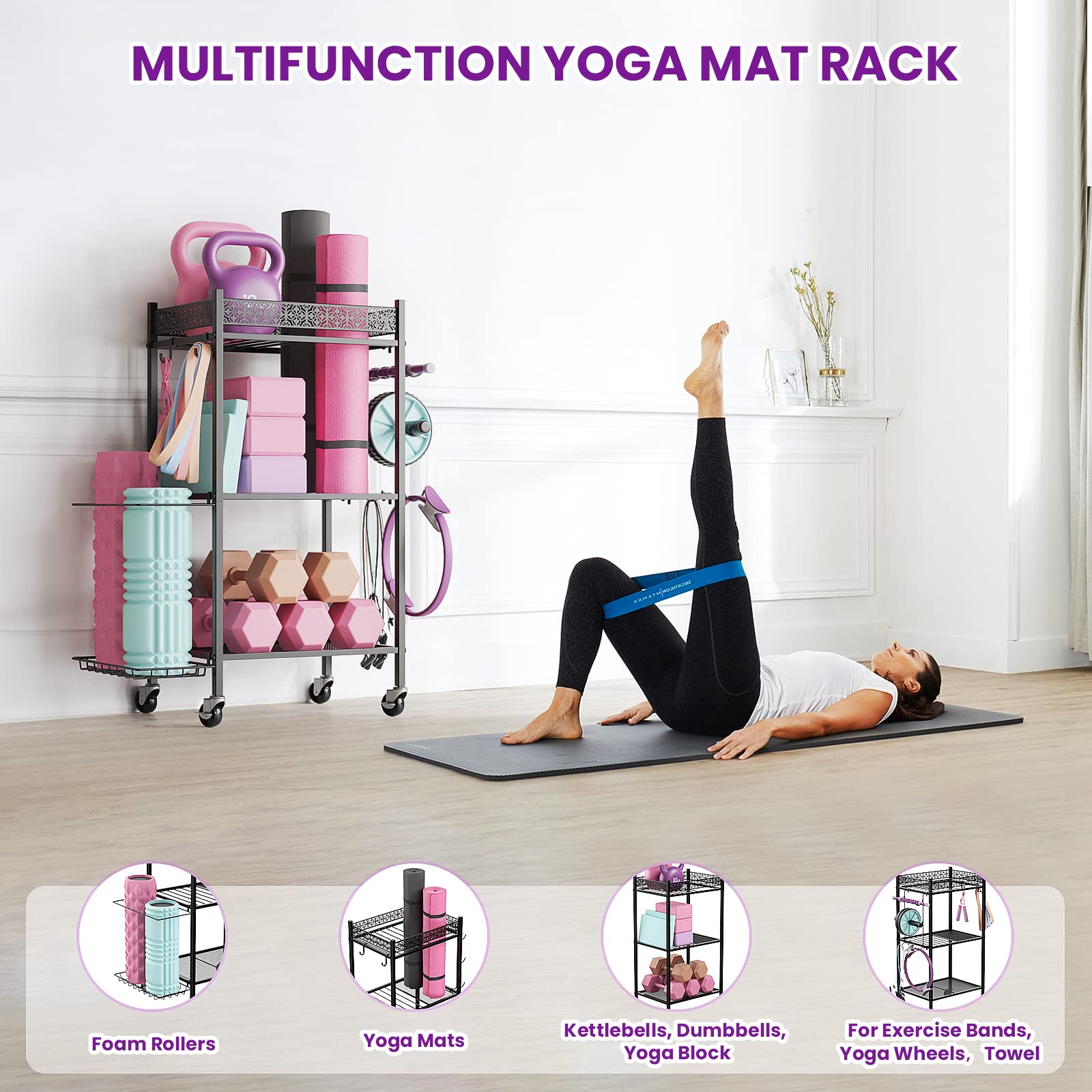- EFFECTIVE STORAGE DESIGN: This yoga mat storage rack has 3 layers and storage slots , which can effectively store different sizes of yoga mats and fitness accessories.The home gym storage rack would meet your needs to place fitness equipment and make your room tidy and beautiful