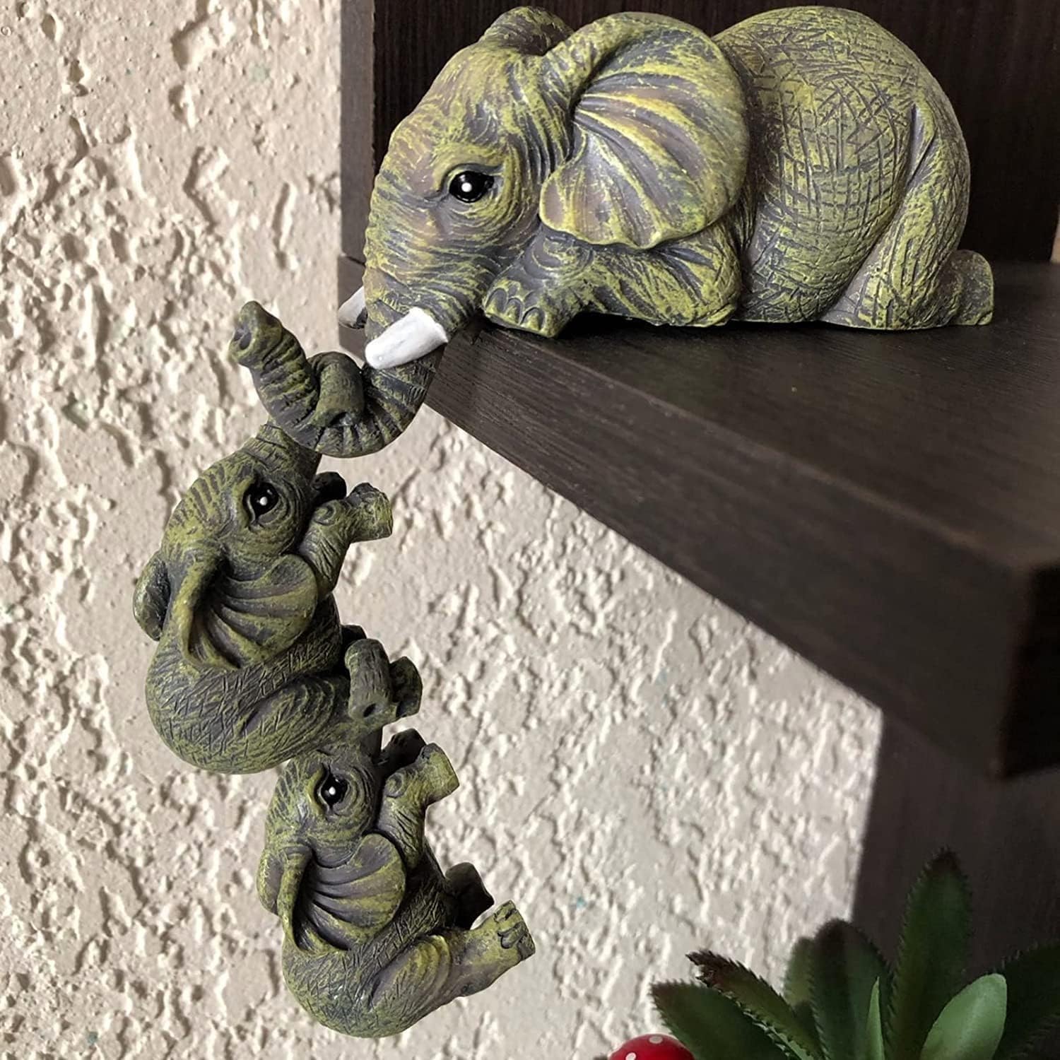 YWHWXB Collectable Elephant Shelf Sitter 3Pcs Set, Mother Elephant Hanging Baby Elephants on The Edge, Mantelpiece Decoration, Hand-Painted Resin Figurines for Home Decor Gift