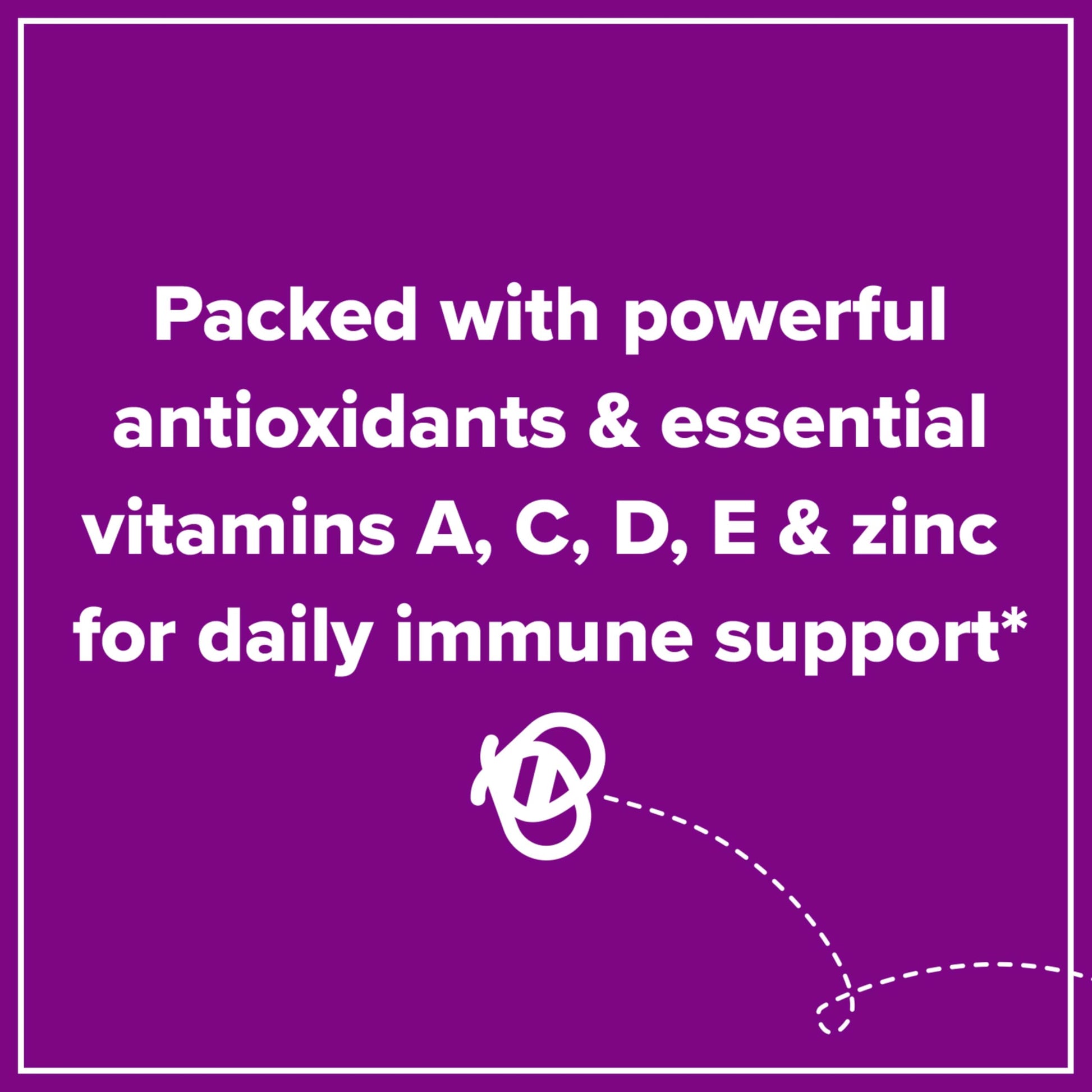 Details: Zarbees Daily Immune Support* Gummies with real elderberry provides you with an excellent source of vitamins A, C, D, E & zinc for immune support.* Our supplement contains nutrients, antioxidants, & flavonoids, which also help support the immune system.* Formulated with ingredients like real elderberry extract, these immune support gummies are safe & effective for adults and kids ages 12+.* These great-tasting, natural berry flavor gummies can be consumed daily and are easy to chew. Our elderberry gummies do not contain gelatin and are vegetarian-friendly - we use pectin from natural sources like apples to create the soft, springy texture. Our gummies are made from carefully selected ingredients inspired by nature— free of drugs, alcohol, artificial sweeteners, and high fructose corn syrup. *These statements have not been evaluated by the Food and Drug Administration. This product is not intended to diagnose, treat, cure, or prevent any disease.