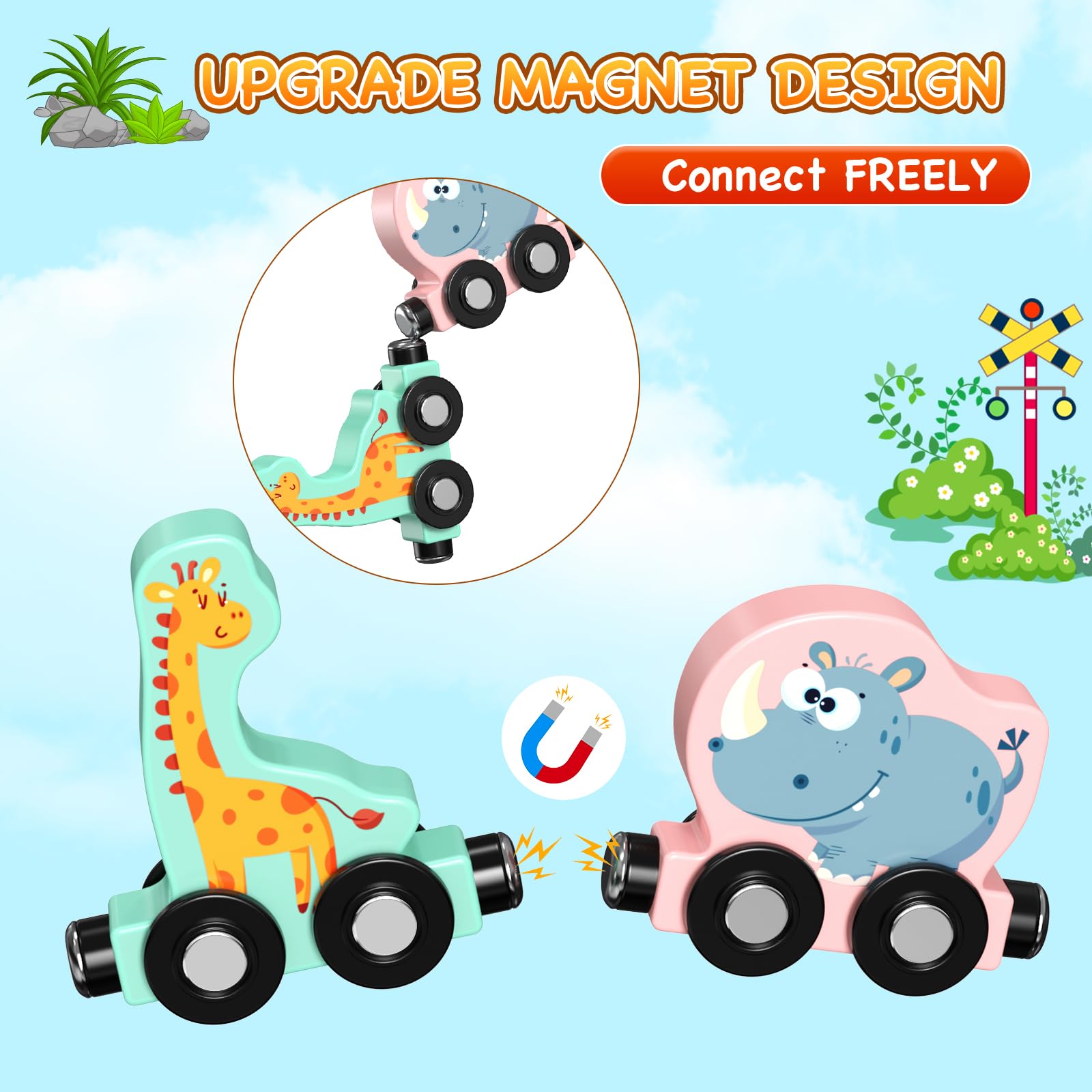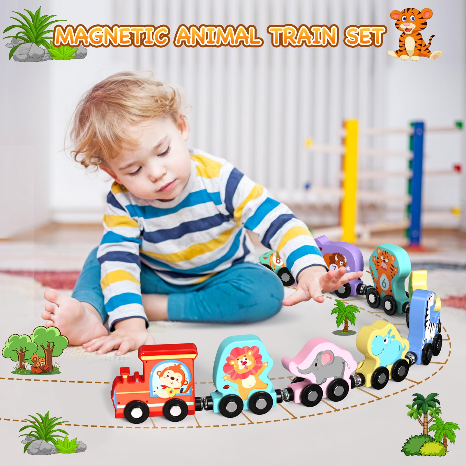 Zeoddler Toys for Toddlers, 11 Magnetic Wooden Animals Train Set, Montessori Toys for Toddlers, Preschool Learning Activities for Kids, Birthday Gifts for Boys, Girls