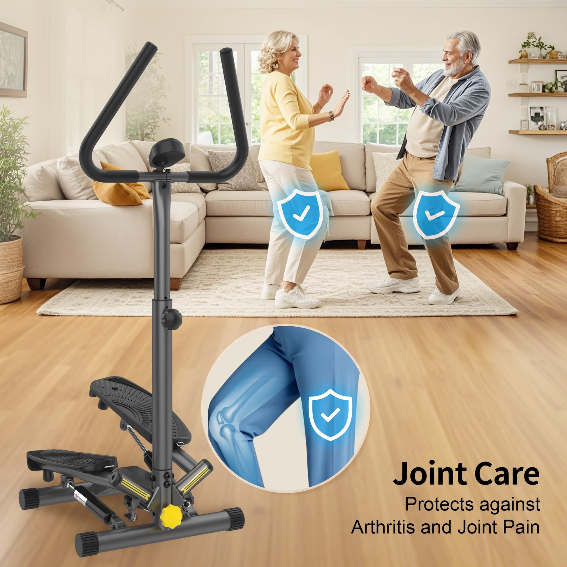 - Full-Body Workout The ZIWWVY twist stepper with handlebar can not only train your legs, buttocks and hips but also your arms, shoulders, biceps with expander training bands. It also defines you an optimal and joint-friendly training device for holistic training for the entire body