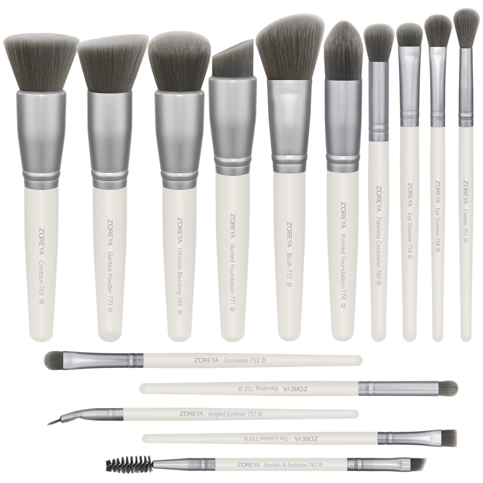 ZOREYA Makeup Brushes - 15 Pcs Premium Bamboo Charcoal Infused Bristles Makeup Brush Set, Foundation Concealers Eye Shadows Make Up Brush,Eyeliner Brushes(White)